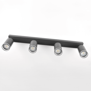 PARIS to czteropunktowa, nowoczesna oprawa, listwa z wymiennym źródłem światła, wykonana z aluminium w kolorze czarnym. Elementem dekoracyjnym oprawy jest akrylowy odkręcany pierścień.