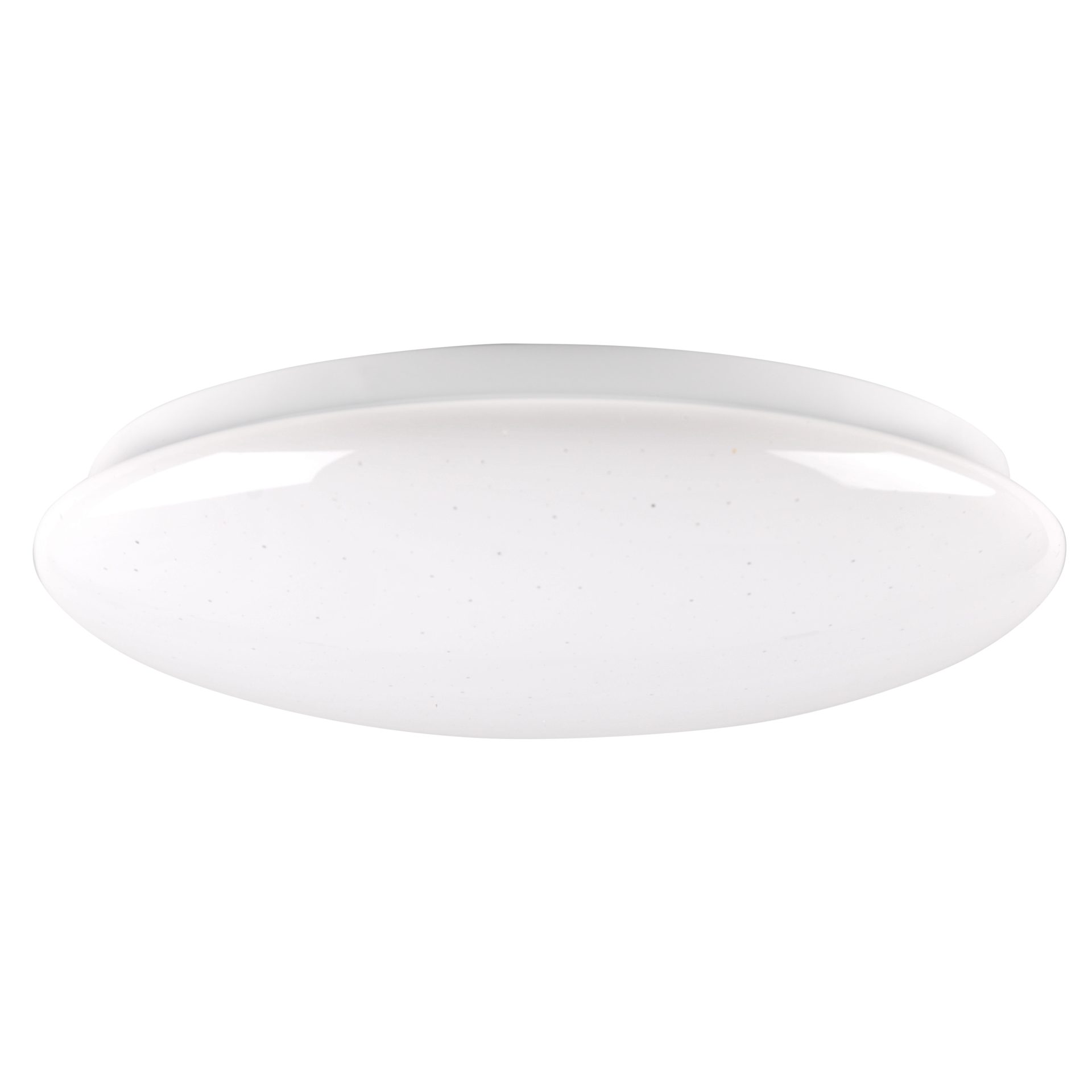Mleczny klosz wspaniale rozprasza światło, dzięki czemu lampa świeci równomiernie na całej powierzchni, nie występuje efekt świecenia punktowego, czy zaciemnionego miejsca z jednej strony (jak w przypadku tradycyjnych plafonów z wkręcaną żarówką), nie powodując tym samym efektu olśnienia.