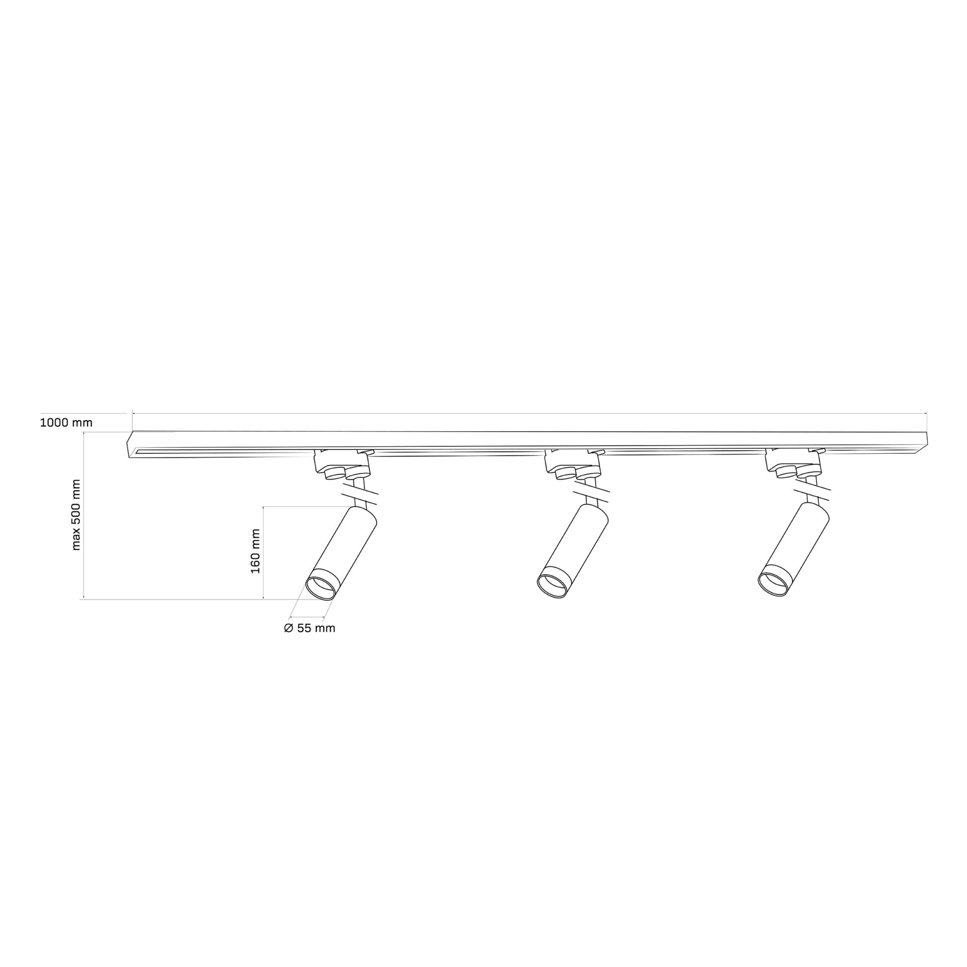 PORTO to nowoczesny zestaw szynowy z trzema reflektorami z wymiennym źródłem światła, wykonany z aluminium w kolorze czarnym.