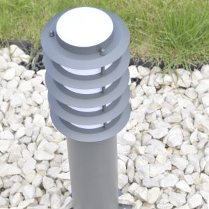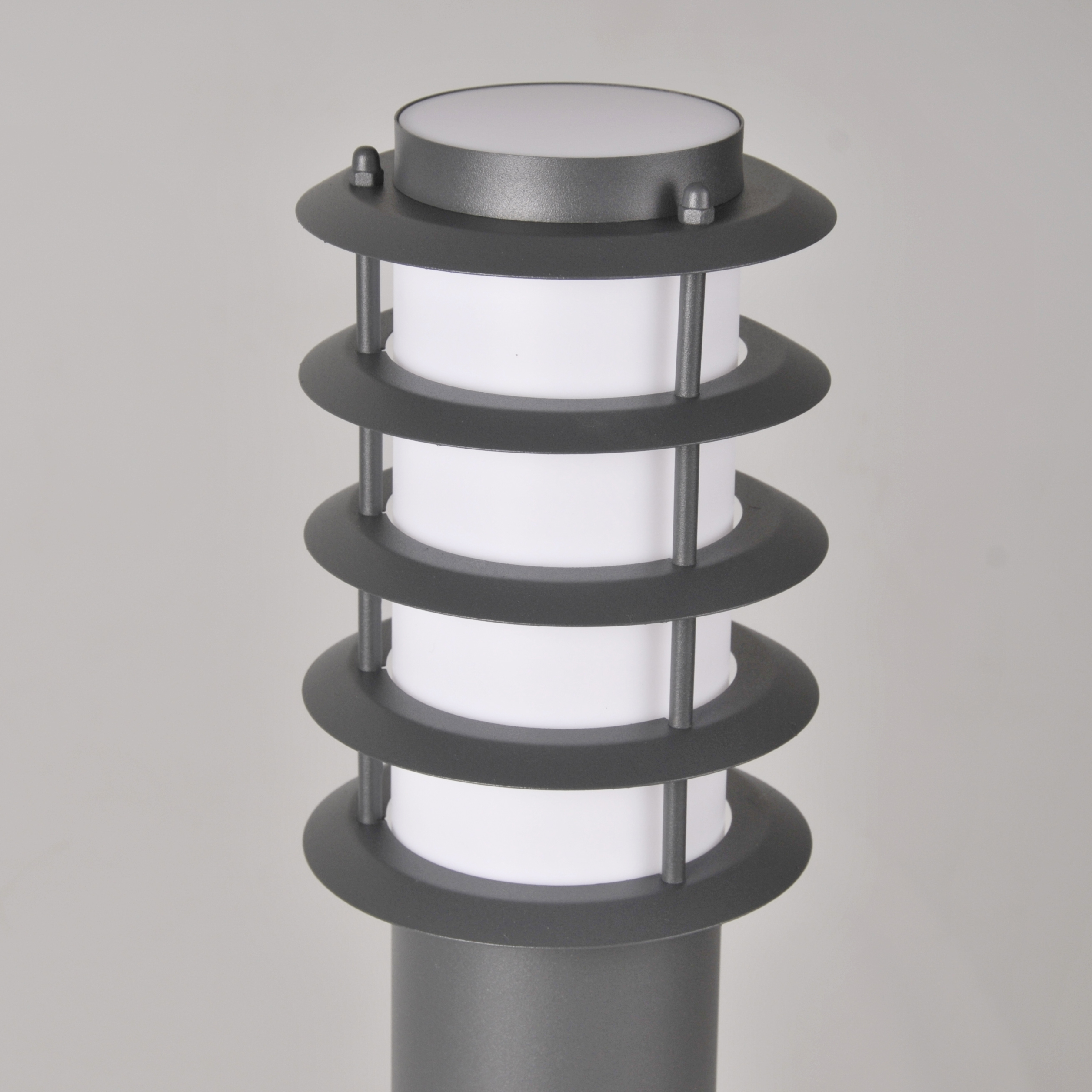Lampy SERENA to nowoczesne oświetlenie zewnętrzne. Źródło światła zostało osłonięte mlecznym kloszem z tworzywa sztucznego, wraz z osłonką z pierścieni w kolorze szarym.