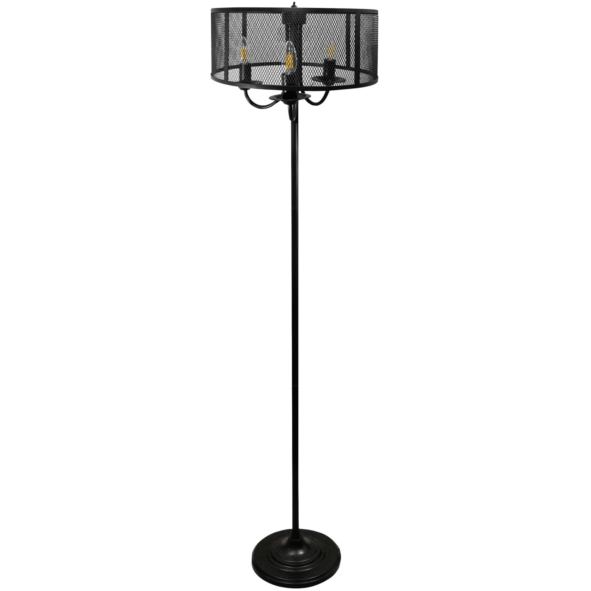 Lampa została wykonana z metalu w kolorze czarnym z kloszem z cieniutkich drucików wykończonym metalowymi obręczami.