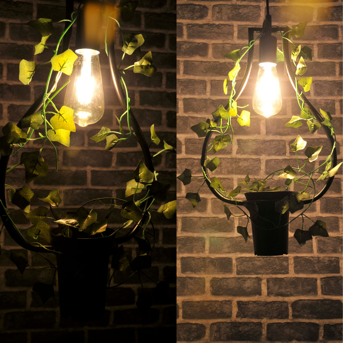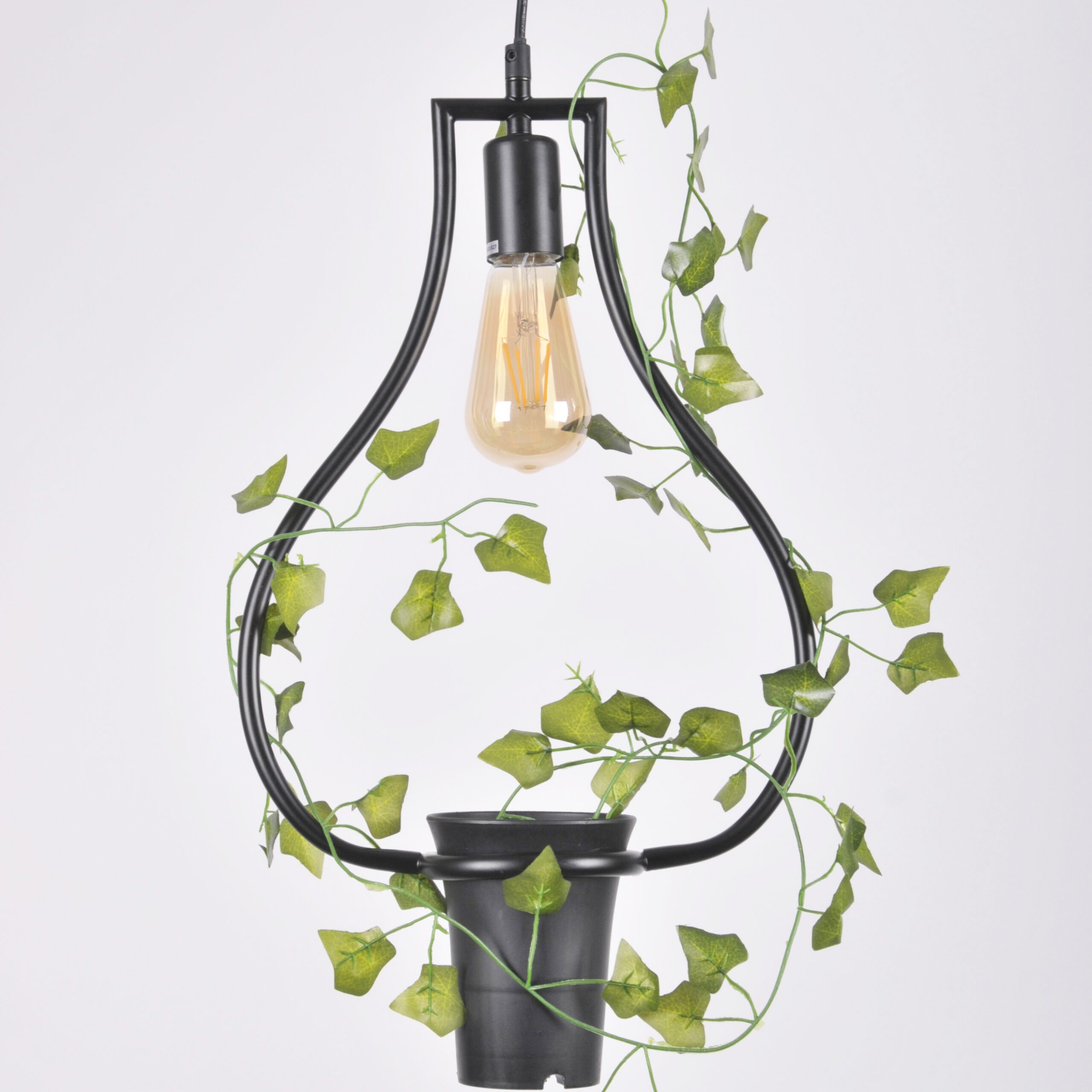 Lampa została wykonana z metalu w kolorze czarnym. Lampa posiada doniczkę z kwiatkiem co dodatkowo wzmacnia jej walory wizualne oraz daje niesamowity urok i dekoracyjny charakter.