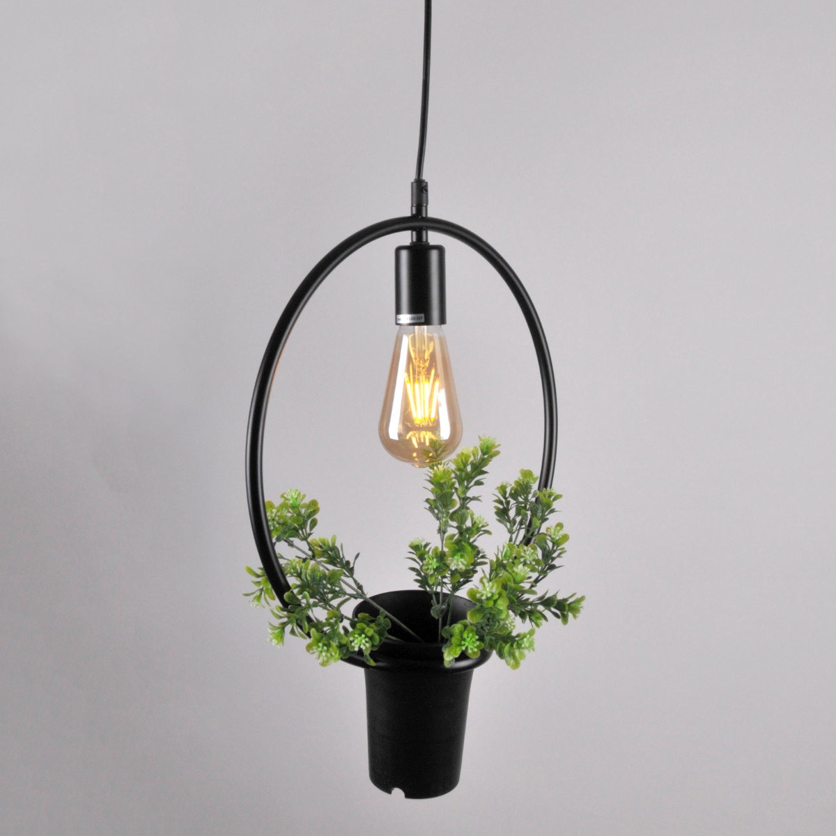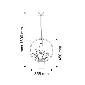 Lampa została wykonana z metalu w kolorze czarnym.  Lampa posiada doniczkę z kwiatkiem co dodatkowo wzmacnia jej walory wizualne oraz daje niesamowity urok i dekoracyjny charakter.