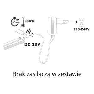 - Do zasilania 5m taśmy z jednego przyłącza zalecamy stosowanie zasilacza do taśm LED 12V; ≥ 27W