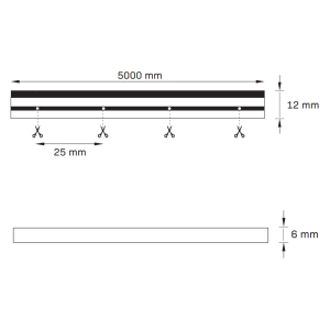 - Możliwość cięcia w wyznaczonych miejscach co 25mm = miejsce cięcia oznaczone na taśmie LED