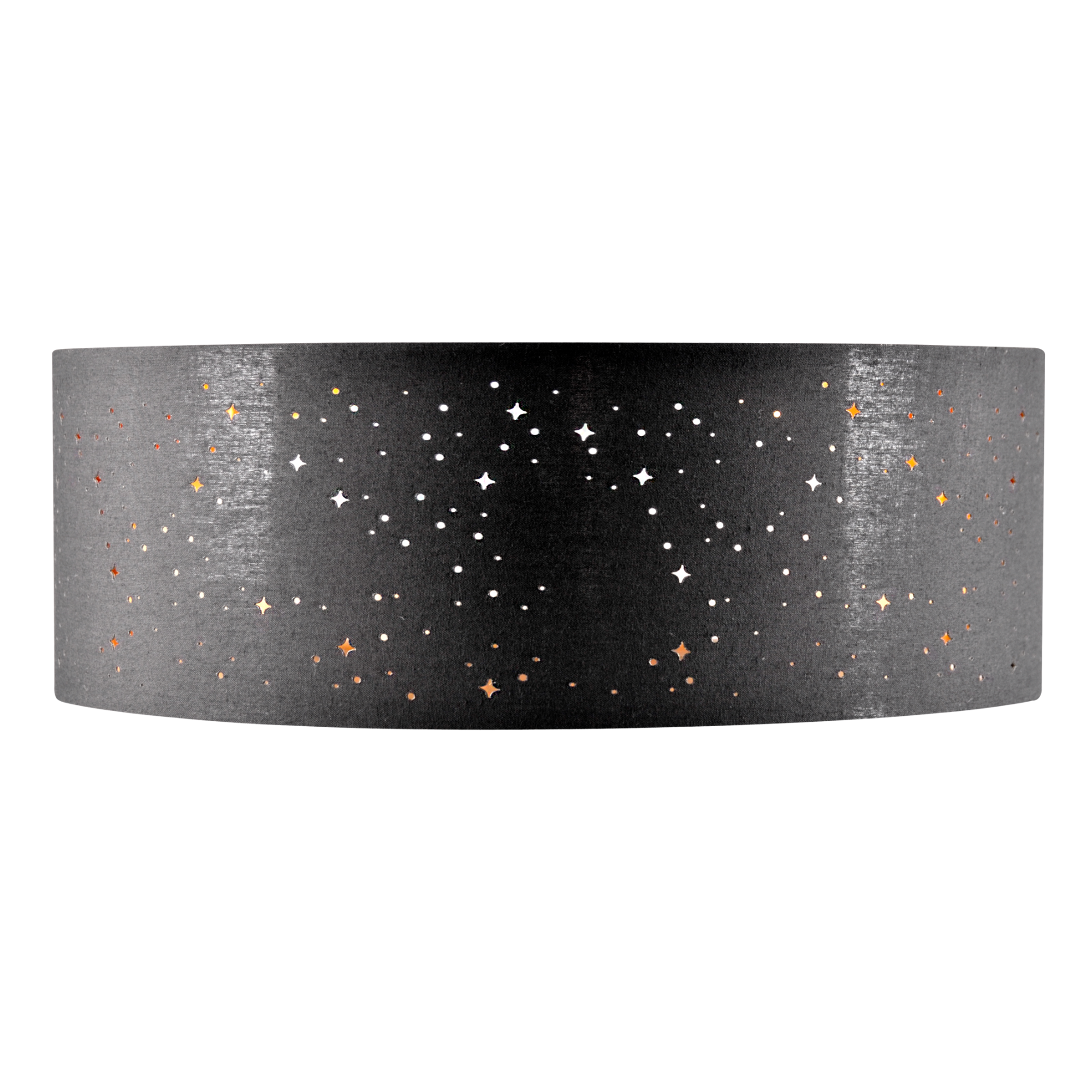Zewnętrzna czarna obudowa kontrastuje ze złotym błyszczącym wnętrzem, z którego wydobywa się wyjątkowo ciepłe i miękkie światło. Dodatkowym walorem wizualnym są otworki w abażurze przypominające rozgwieżdżone niebo.