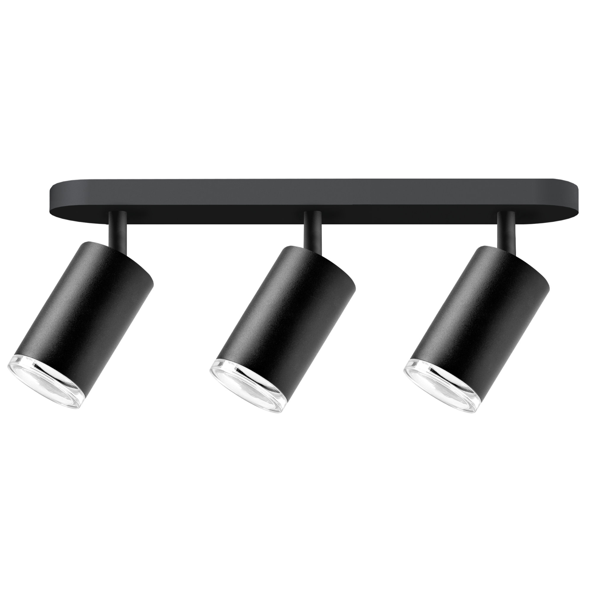 TURYN to trzypunktowa, nowoczesna oprawa, listwa z wymiennym źródłem światła, wykonana z aluminium w kolorze czarnym, wykończona transparentnymi pierścieniami. Dzięki podwyższonemu IP44 lampa może być zastosowana w pomieszczeniach o zwiększonej wilgotności np. łazience.