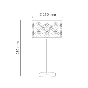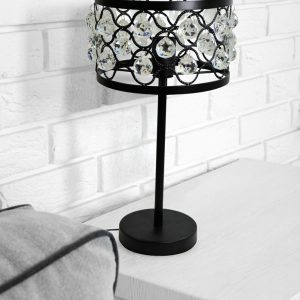 Lampa została wykonana z metalu w kolorze czarnym. Klosz lampy również zrobiony z metalu pomalowanego na czarno z delikatną plecionką z drucików i wykończony czarnymi obręczami. Pomiędzy wzorem zawieszone zostały transparentne kryształowe kuleczki. Po zapaleniu lampy, kryształki przepięknie odbijają światło, tworząc tym samym niepowtarzalny efekt wizualny.