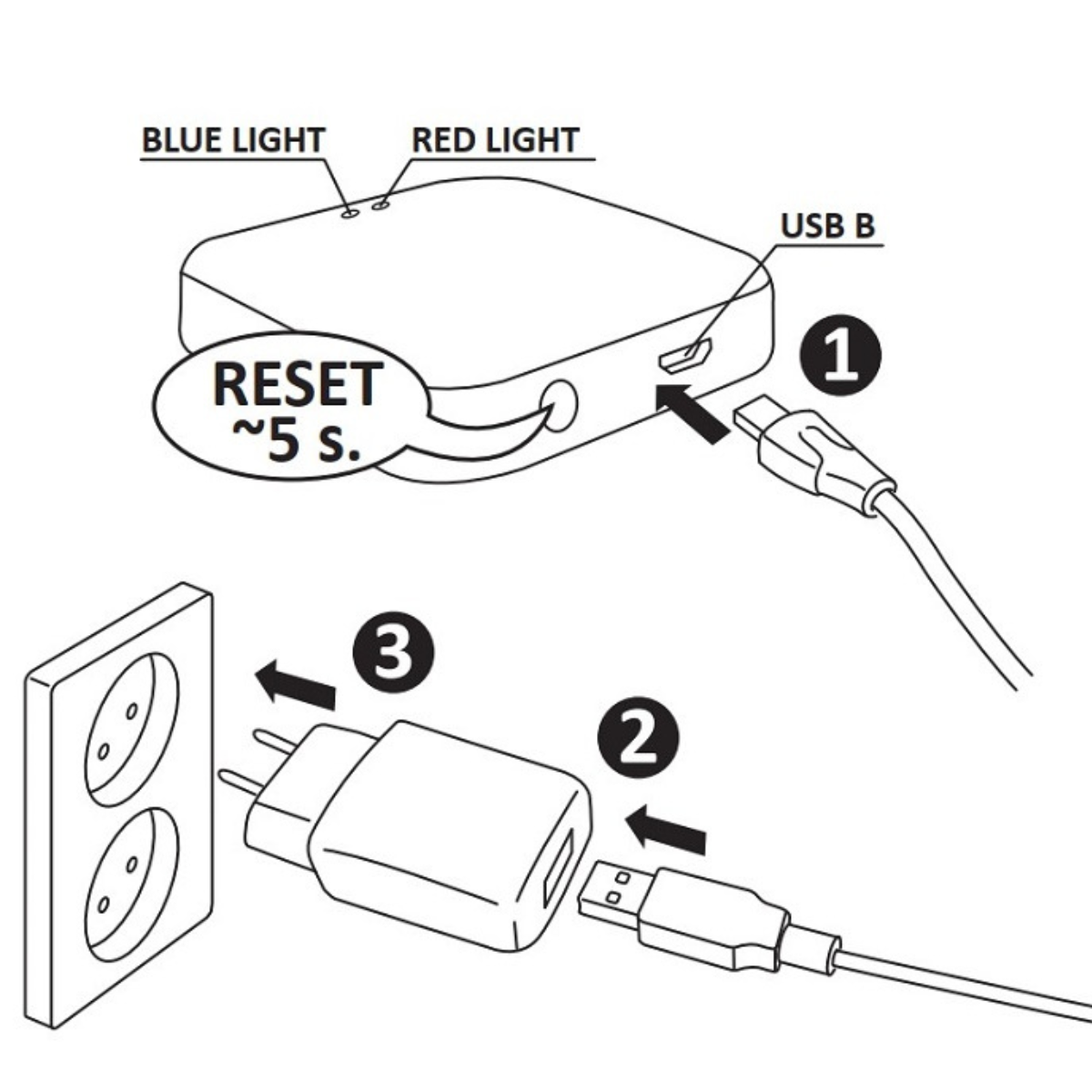 - Zasilacz220-240V 50/60Hz USB 5V 1A