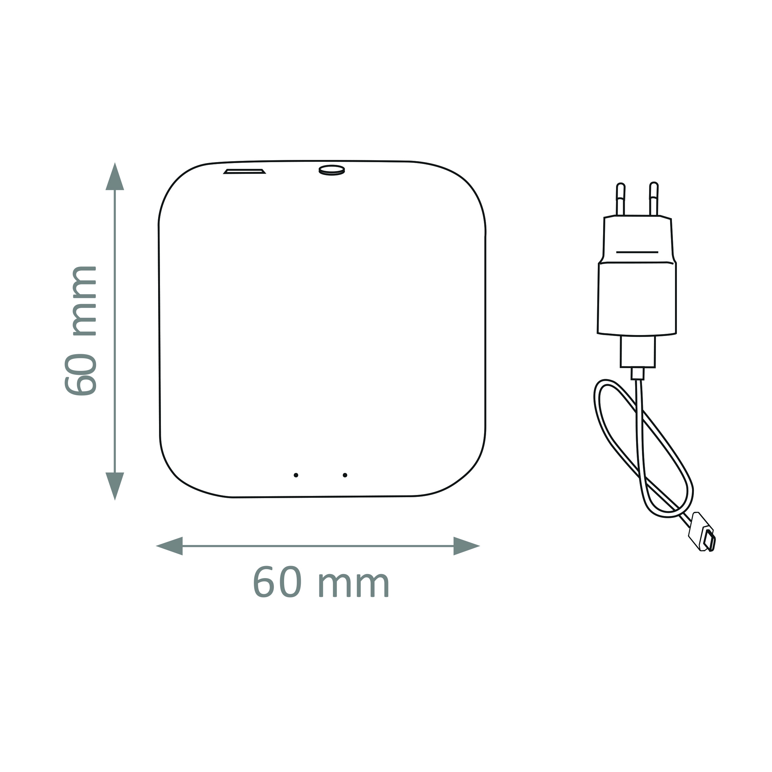 Przed montażem urządzenia w wybranym miejscu należy sprawdzić zasięg domowej sieci Wi-Fi i zapoznać się z instrukcją. Schemat montażu: patrz ilustracje na końcu instrukcji. Montaż polega tylko na podłączeniu bramki do zasilania poprzez dołączony kabel USB oraz zasilacz.