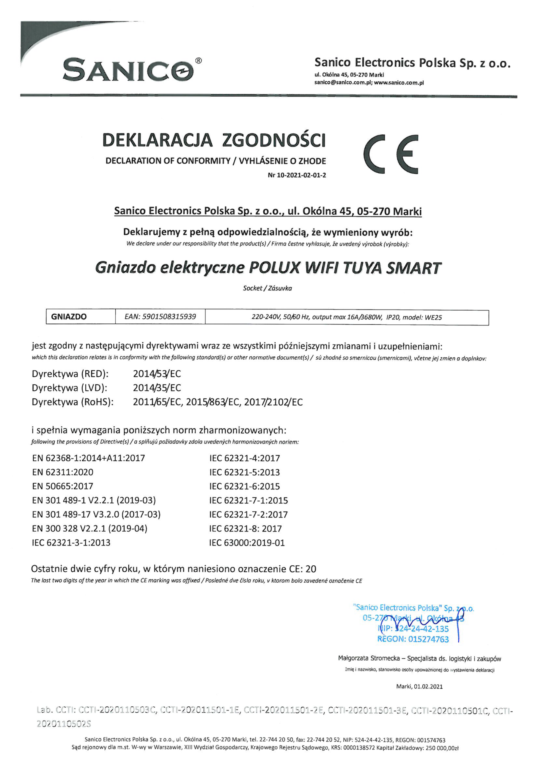 oświadcza, że urządzenia radioelektryczne wymienione w niniejszej instrukcji są zgodne z dyrektywą 2014/53/WE.