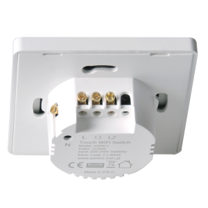 Włącznik światła wyposażony jest w kondensator. Instalacja nie wymaga przewodu neutralnego (N). Pozwala to na montaż urządzenia w każdej istniejącej instalacji. Włącznik podświetlany, sygnalizuje przy pomocy kolorów włączenie i wyłączenie światła.