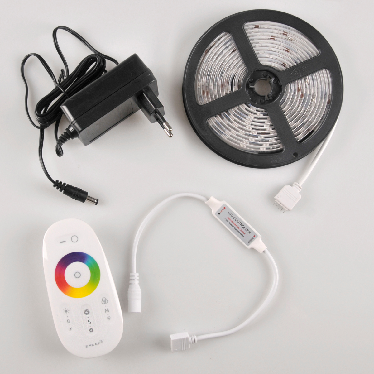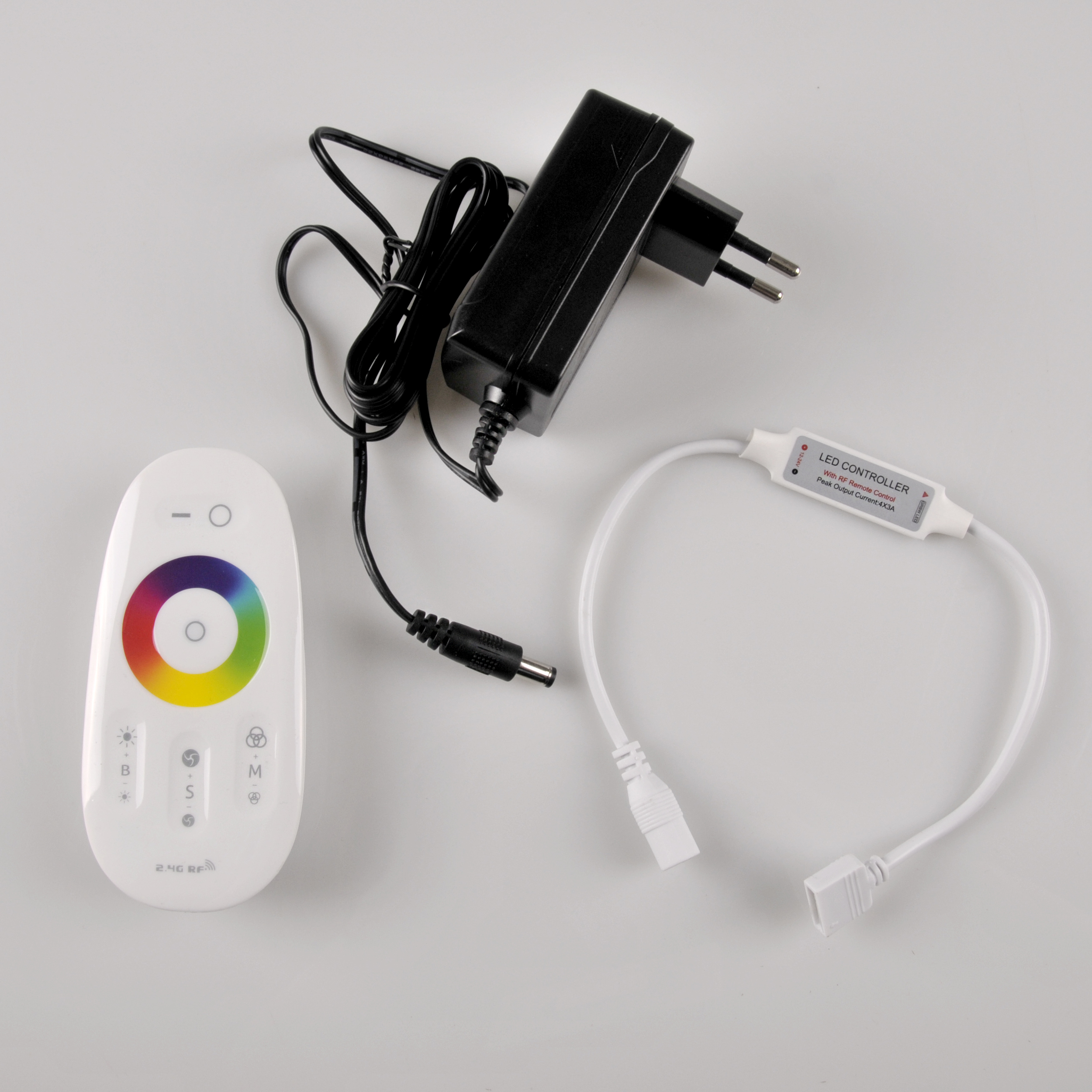 - Zestaw zawiera taśmę LED RGBW IP65 3m, kontroler, pilot radiowy RF (brak baterii w zestawie 2 x AAA), zasilacz do taśm LED 24V DC 1A 24W