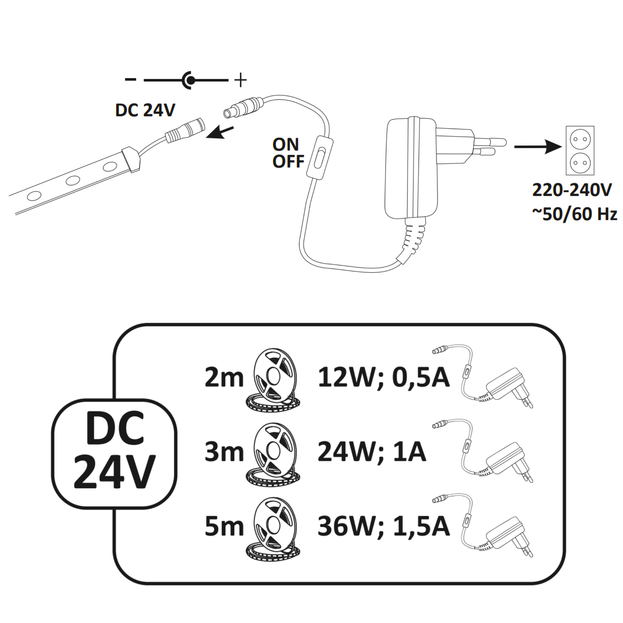 - Zasilacz w zestawie 24V DC 1,5A 36W